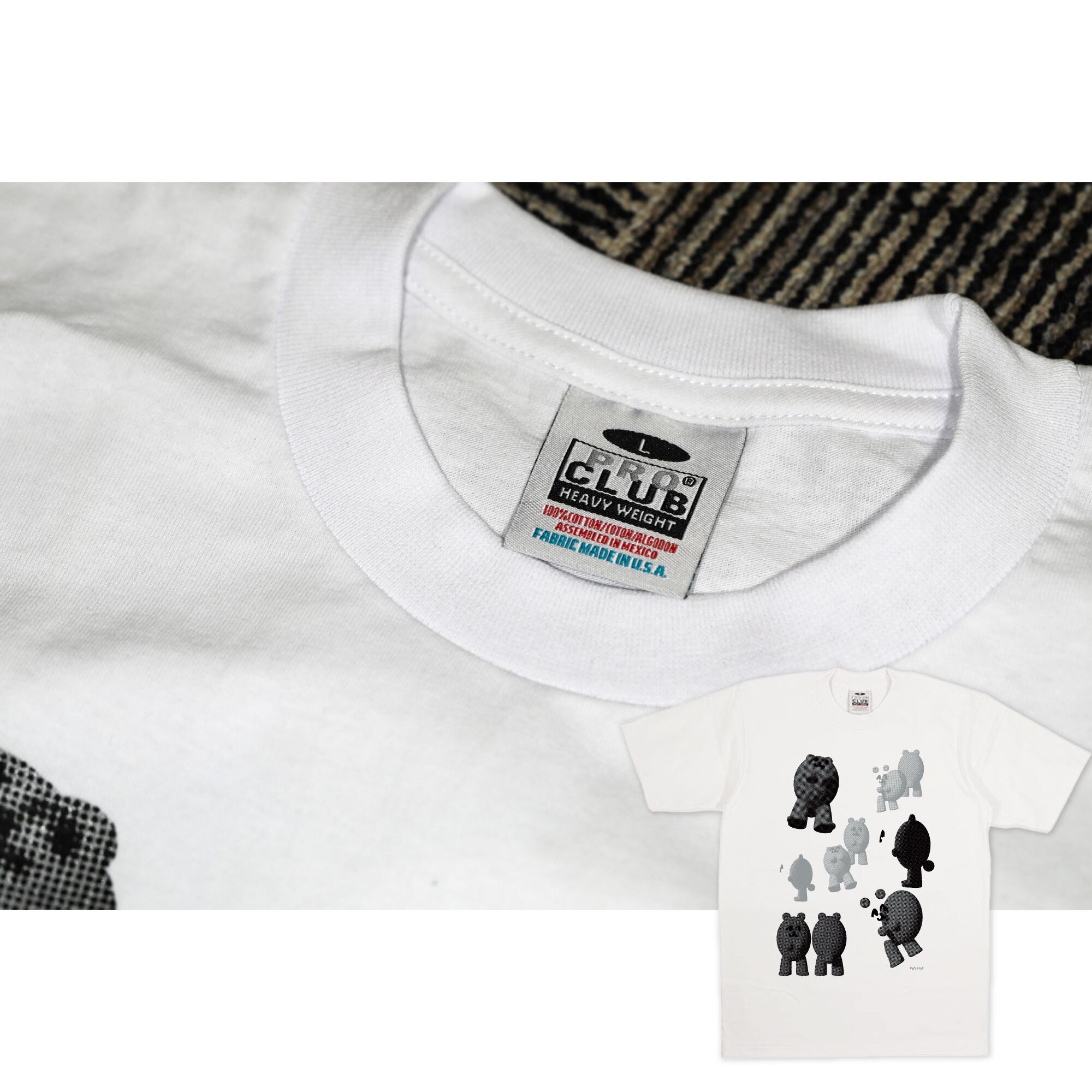CGのキューティクルちゃんがプリントされたシルクスクリーンTシャツです。ラメ入りシルバーとブラックの2色のインクで刷っています。